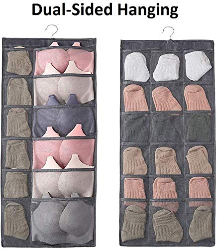 Save Space Sock Organizer: Made of high quality Oxford Fabric with Dual-Side mesh pocket.It can be hanging in closet rod, clothes Bar, laundry rack, bedroom, storeroom, dorm, travel RV etc.