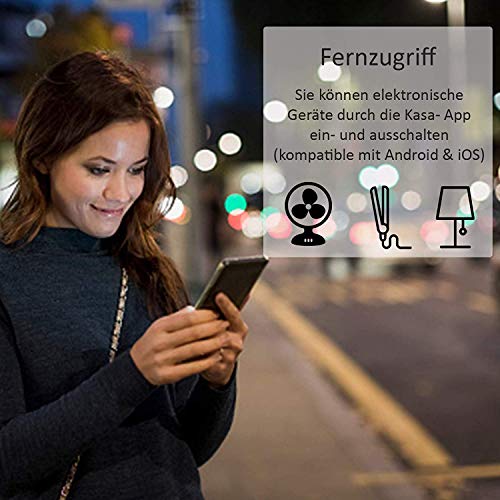 Turn electronics on or off from anywhere with your tablet or smartphone using the free Kasa app (Compatible with Android 4.1 or higher and iOS9 or higher)