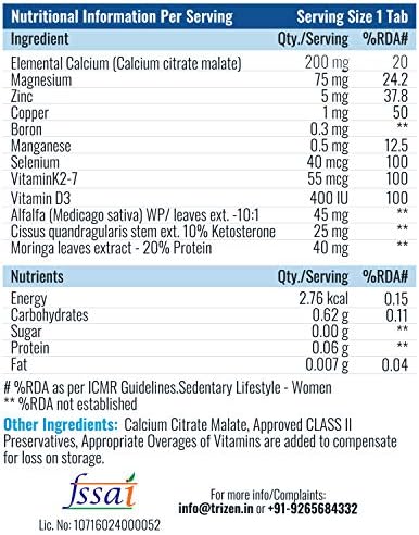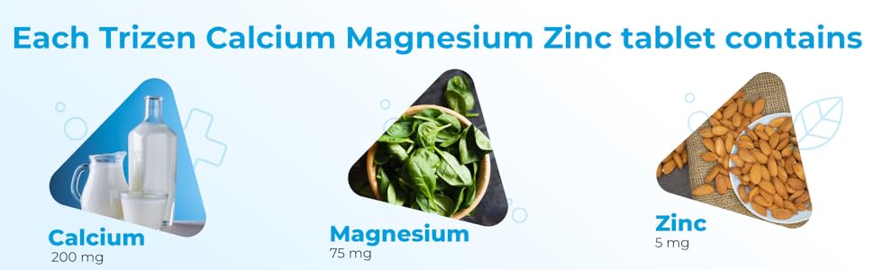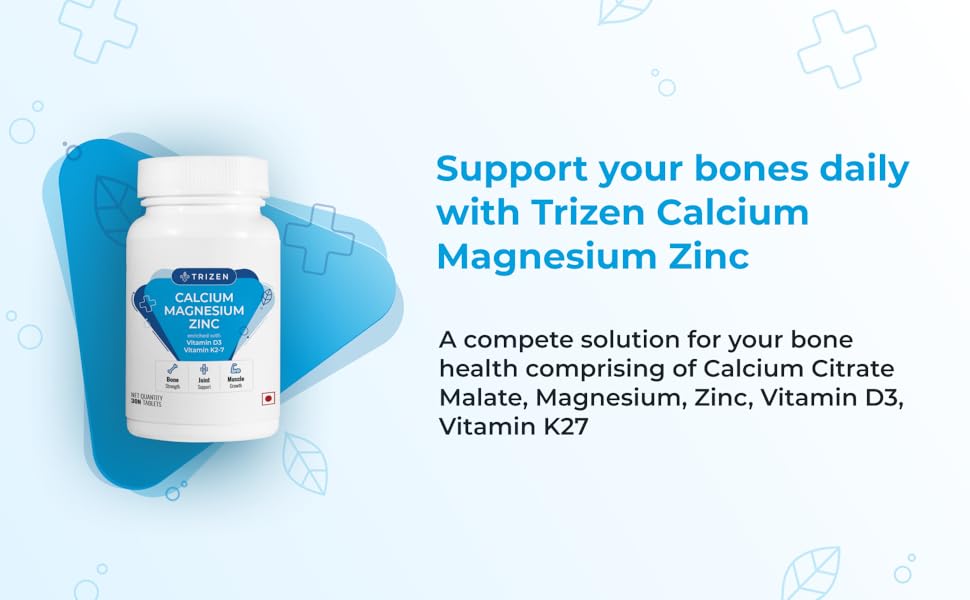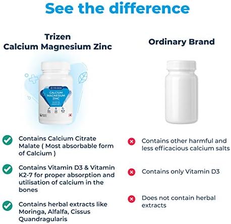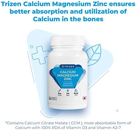 होम » Trizen Calcium Magnesium Zinc | with Alfalfa, Vitamin D3 & K2-7 | Bone Health & Joint Support | 30 Tablets