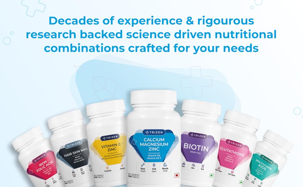 HIGH BIOAVAILABILITY – Trizen Calcium Tablets contain 1000mg Calcium Citrate Malate (CCM) providing 200mg of Elemental Calcium (upto 2.5 times more bioavailable). Being water soluble, CCM Tablets do not cause any unwanted Calcium deposits in the body.