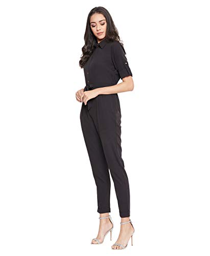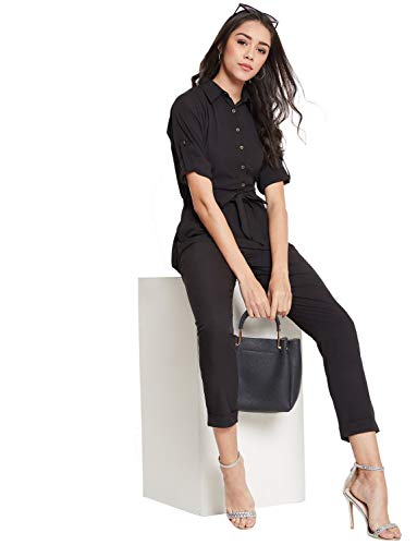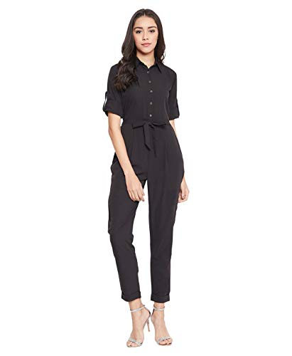 Made from smooth, wrinkle resistant crepe fabric, this jumpsuit is sure to look trendy. It is color bleeding resistant thereby making it long lasting. Sweat absorbent armpit lining is used to keep away underarm stains.