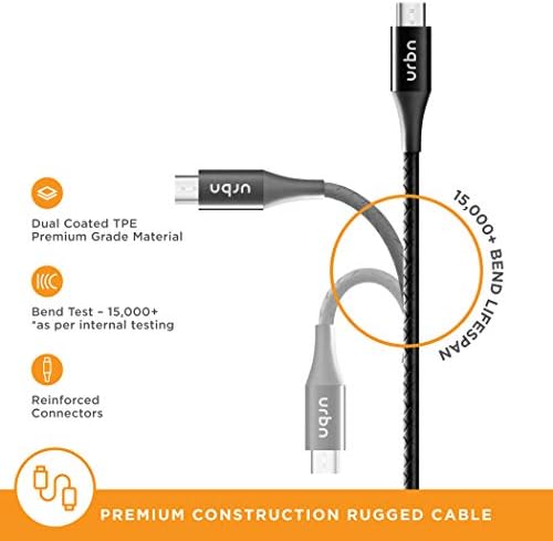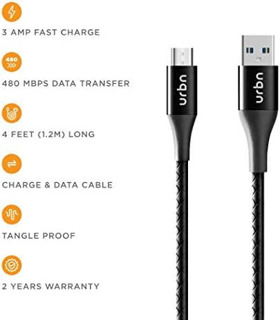 4 Feet Ultra-Durable Cable: The Urbn cable is made from premium grade TPE material that is double-coated ensuring superior durability along with fast and secure charging capability