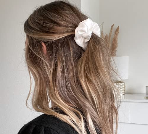 WHY SILK? – Silk preserves hair so less hair loss & healthier hair. Silk fibers have a very similar structure to human hair. The smooth surface of silk will minimize the chance of hair getting caught.SUITABLE FOR MANY OCCASIONS – You can wear them to work, school, sports, parties, ceremonies, traveling, or hangouts. Perfect hair accessory for buns, messy bun, ponytails, braids & pigtails.IDEAL GIFT FOR WOMEN GIRLS – Silk scrunchies are a perfect gift for a woman, teen, mom, sister, and girlfriend.Fashion Symbol : The soft and smooth satin hair circle is suitable for any makeup hair, and the bright color adds different colors to you.Having it will make you look more trendy and charming.
