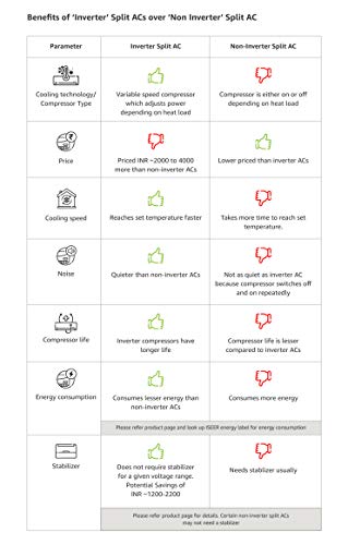 Capacity: 1.5 Ton. Suitable for medium sized rooms (111 to 150 sq ft)