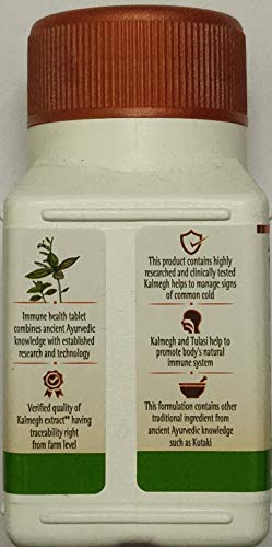 Immune health tablet combines ancient Ayurvedic knowledge with established research and technology . Verified quality of Kalmegh extract having traceability right from farm level. This formulation contains other traditional ingredient from ancient Ayurvedic knowledge such as Kutaki.