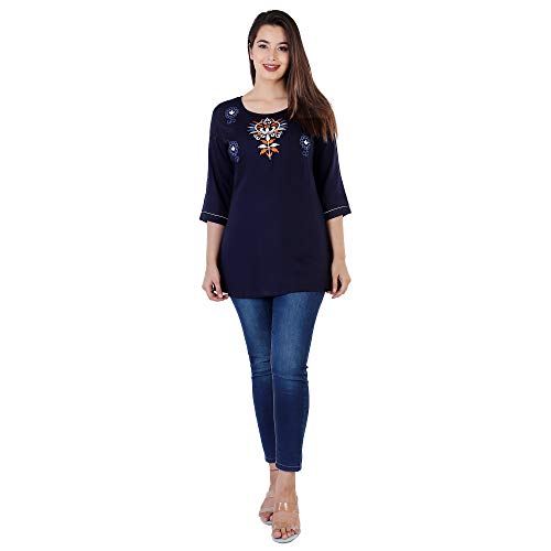 Fabric: Rayon|| Pattern: Plain With Embroidered || Sleeves:3/4th Sleeve || Style: Casual Top