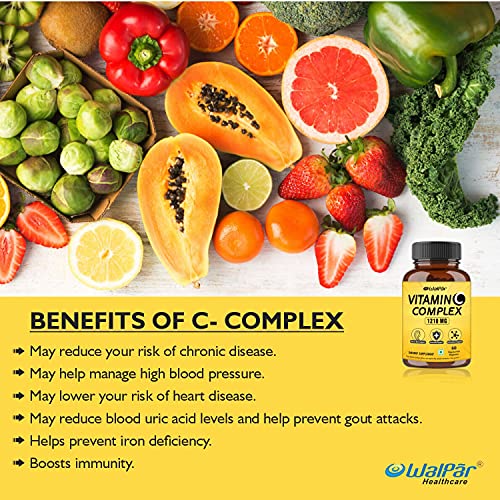 ★ Great Benefits ★: Walpar Vitamin C Complex Supplements maintains the proper functioning of your immunity and antioxidants. Moreover, it helps to make your Hair, Skin, and Joints healthy. Adding these Vitaminc Complex tablets to your diet will reduce the risk of chronic disease, maintains stable blood pressure, makes your heart healthy as well as strengthen your memory. It also contributes to the development of new tissue wound healing works as an immunity booster and prevents iron deficiency.