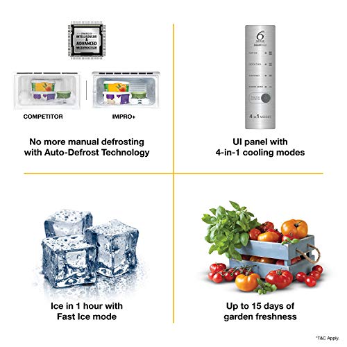 280L capacity ; 3 Star Rating ; Auto-Defrost Technology; 4 in 1 cooling modes on UI ; Upto 15 days of garden freshness; Upto 12 hours of milk preservation during power cuts ; Prevent upto 99% bacterial growth with Microblock Technology ; Ice in 1 hour with Fast Ice mode ; Fastest in bottle cooling; Magic chiller with easy slide action for quick access items ; Auto-Connect to Home Inverter ; Toughened Glass Shelves ; Large Vegetable crisper ; Stabilizer Free Operation (Range: 95 V – 300 V) ; Warranty: 1 Year on Product, 10 Years on Compressor; Anti-bacterial gasket