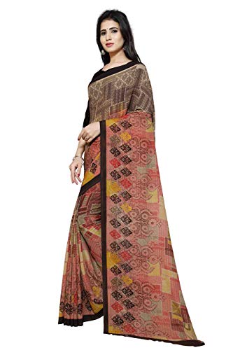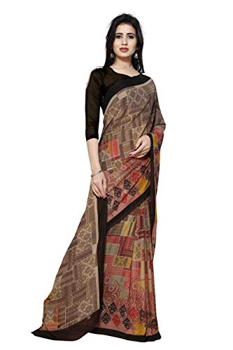 Winza Designer georgette with blouse piece Saree (G-30- Brown_Free)