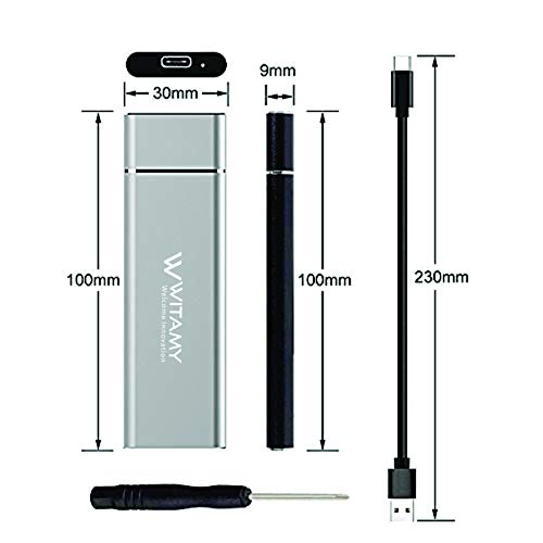 What We Offer: 1 x Witamy USB-C NGFF M.2 SATA External SSD Enclosure Case;1x USB 3.0 to C cable;1 x Screw driver; 1 x