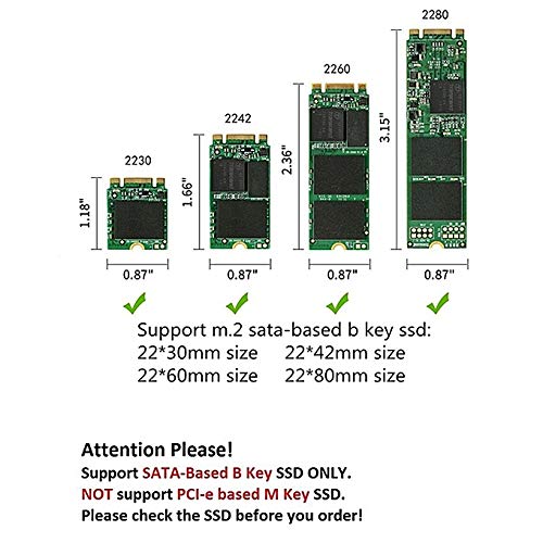 Compliable with NGFF M.2 SSD 2230 / 2242 / 2260 / 2280 of all brand like WD, Crucial, Samsung, Kindgston ;Hot-swappable,Plug and Play,No Driver needed.