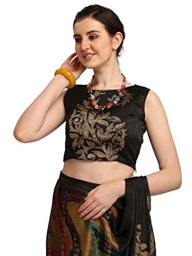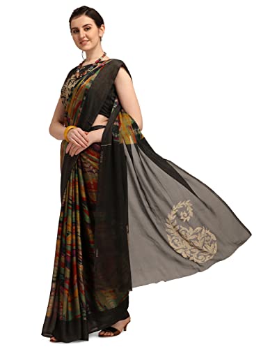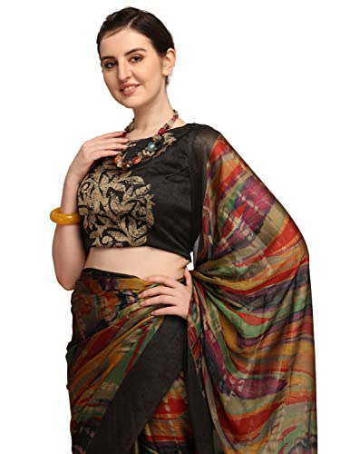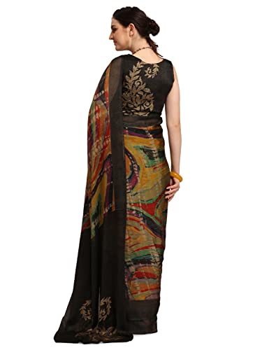 Womanista Women’s Black & Multicolor Printed Crepe Saree(TI2487_Black & Multicolor_Onesize)