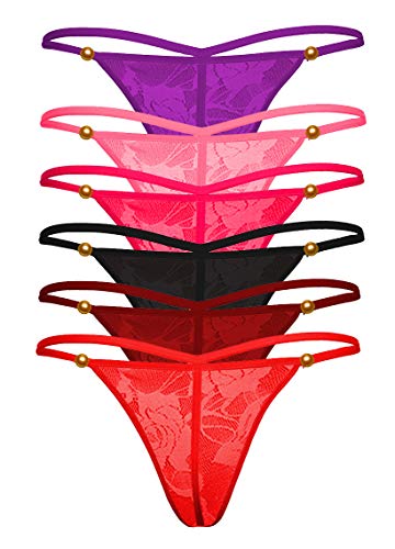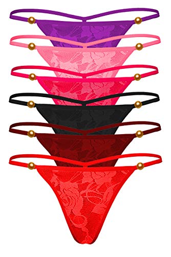 Pack of 6 sexy g-string thong : Red, Black, Maroon, Pink, Rose, Purple. Best deal, save more with this combo offer.Perfect for casual wear or enticing your lover with a sexy g-string.Women pack of 6 g-string panty.Floral semi-sheer lace fabric. Super soft and comfortable to wear and touch. High elastic material , comfortable fit for different sizes.