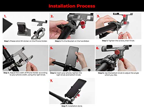 360° ROTATION: The cell phone mount comes with 360 degree rotation, and the tilt angle can be fine-tuned and fixed, you can adjust your phone to any angles you want during riding, free your hands at anytime and anywhere whether you are talking, navigating, listening to music or charging.
