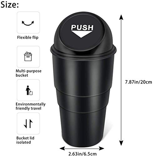 Vehicle Car Auto Garbage Trash Can Dimension: Measures 2.5″ diameter at the base; 3.7″ diameter at the top; and 8″ Height.